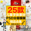 54款儿童、潮童单片写真字体海报PSD模版,儿童摄影后期修片合成文字素材