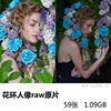 RAW原片 立即下载55张蓝色花朵花环外模美女妆面造型头像照raw未修人像原片,相机dng、cr2格式摄影后期修图练习素材