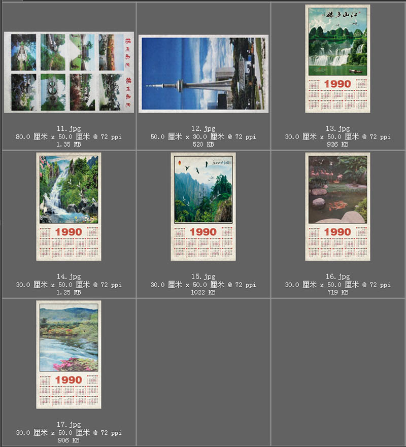 【内 容】16张90年代风景1990年挂历画图片素材。