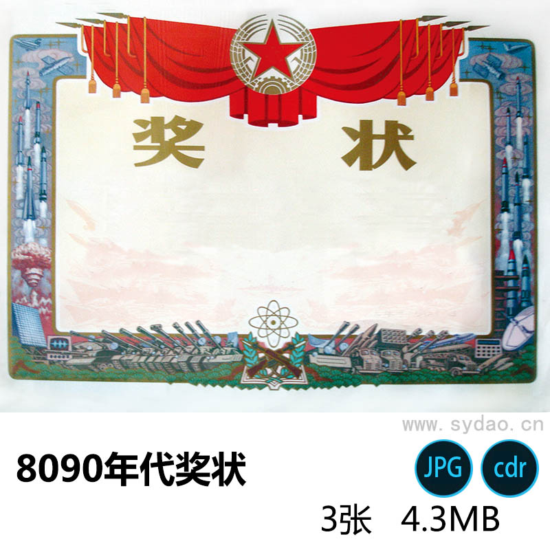 【内 容】3张8090年代复古经典奖状l图片设计素材。