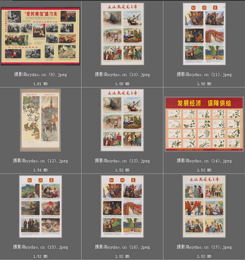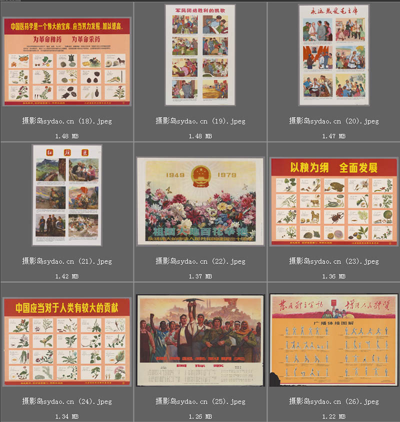 【内 容】30张精选七八十年代宣传画广播体操图解、国际歌词曲、军民团结宣传画等。