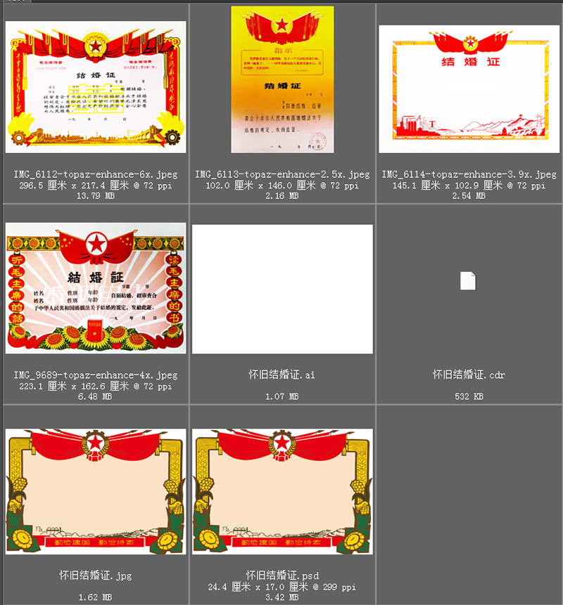 【内 容】5张五六七十年代早期老式怀旧结婚证JPG图片戏用素材。