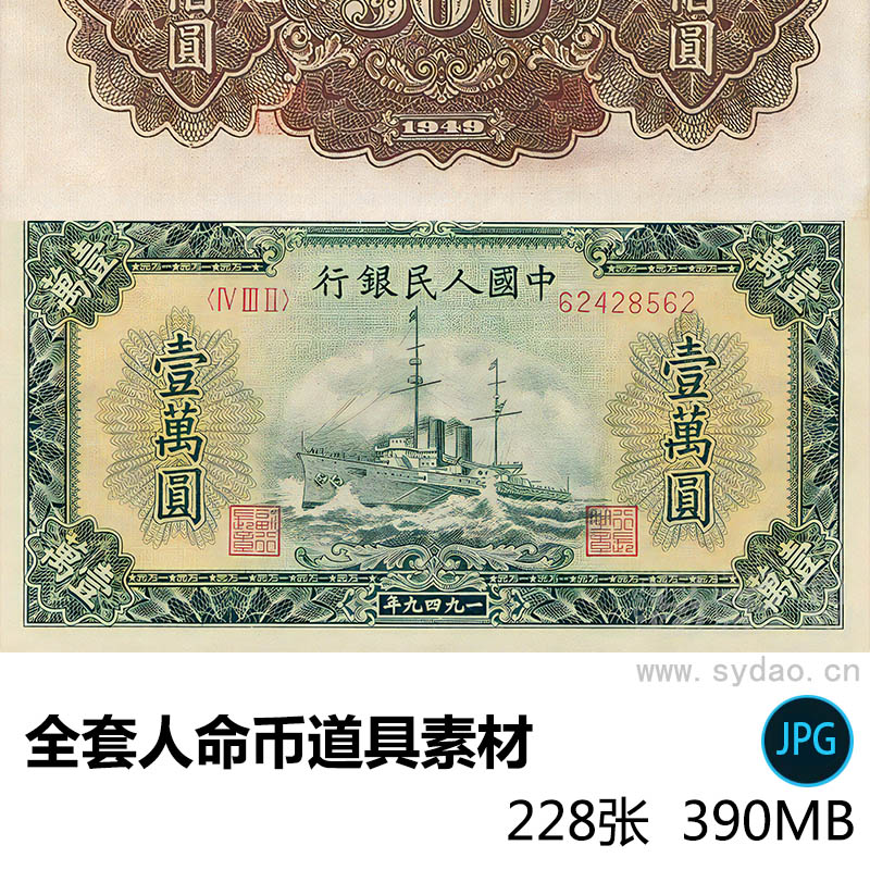 【内 容】228张全套第一二三四五套人民币正反面图片道具戏用素材合集。