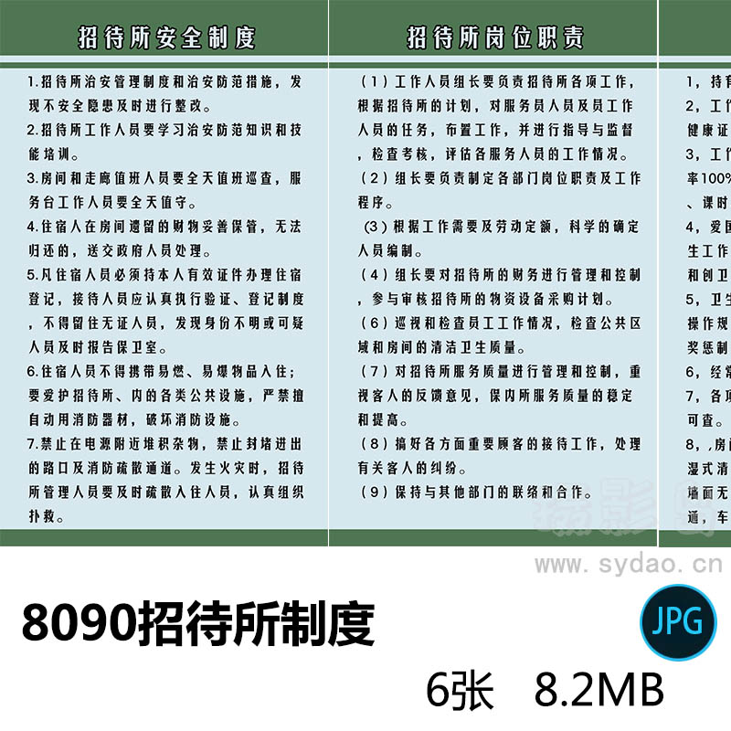 【内 容】6张80年代90年代旅馆旅店招待所安全卫生岗位职责制度JPG图片影视戏用素材。