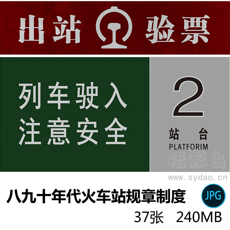 【内 容】37张八九十年代火车站规章制度、站牌、标语、宣传栏、安全需知等JPG影视年代戏用素材。