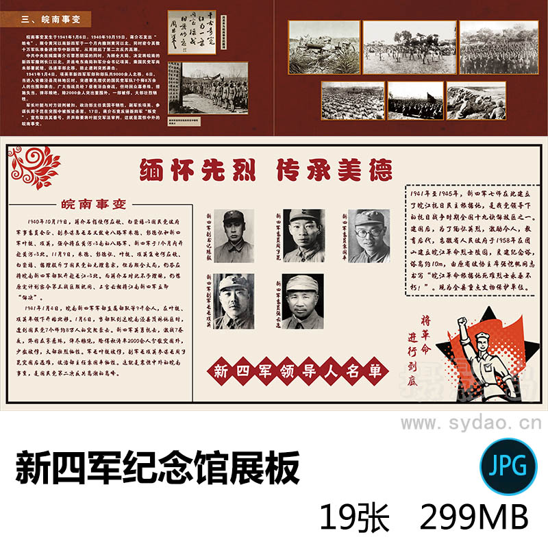 【内 容】19张八九十年代新四军纪念馆展板影视戏用图片素材。